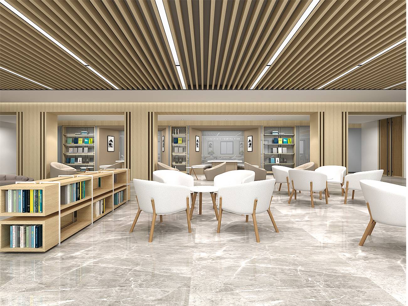 在保持傳統圖書館功能的前提下,以莊重、大氣、現代化為設計原則,針對圖書館大廳及閱覽室兩部分,既有莊嚴、明亮的大廳設計也有輕松、活潑、舒適的閱覽室設計,為國家行政學院圖書館打造具有學院形象、圖書閱覽、學員交流、教研成果的互動展示空間。